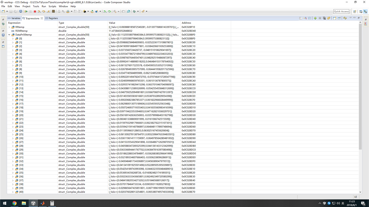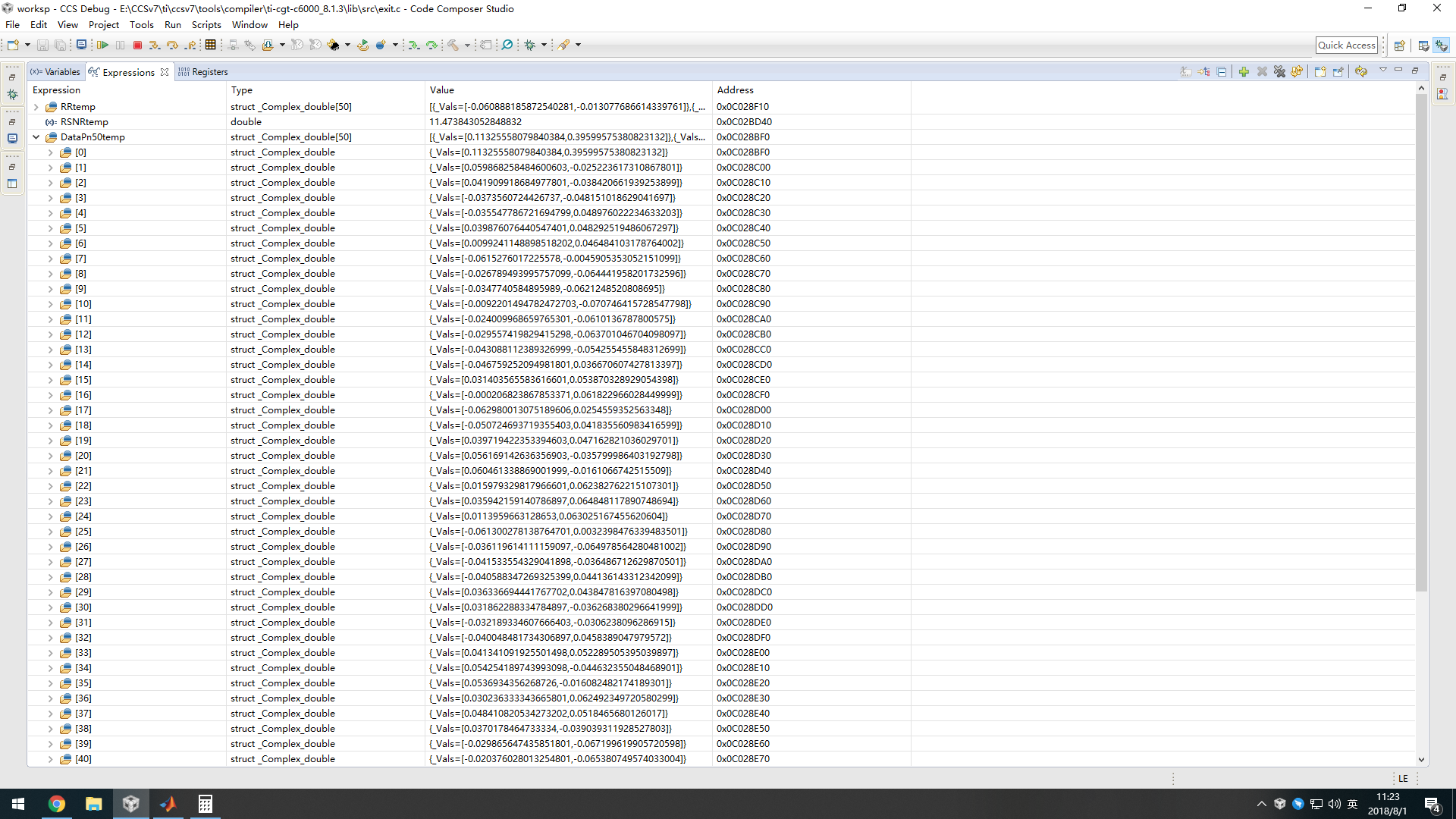 其中pn50[50]和CDataSample_rx[5066]是初始化好了的double complex型数组
