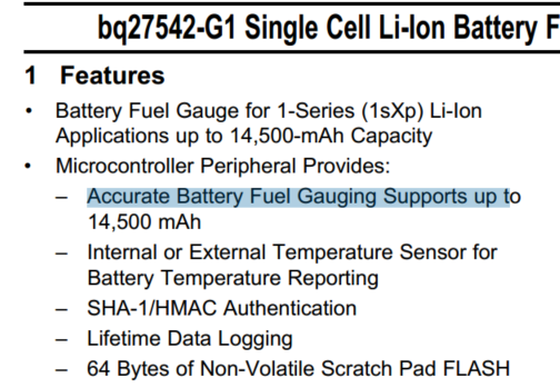 bq27542g1支持的最大电量能到多少? 官网和手册上显示的不一样