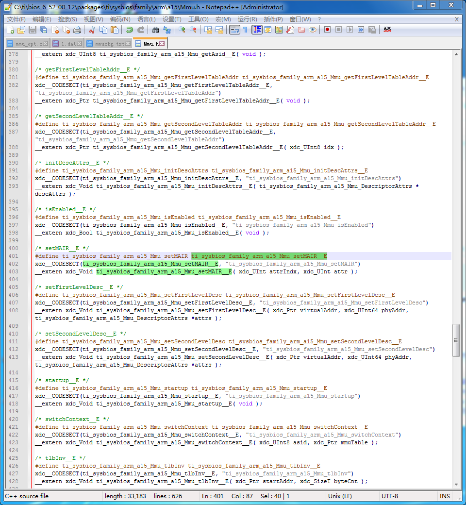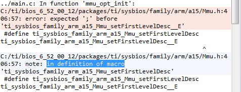 C:/ti/bios_6_52_00_12/packages/ti/sysbios/family/arm/a15/Mmu.h:406:57: error: expected ';' before 'ti_sysbios_family_arm_a15_Mmu_setFirstLevelDesc__E'