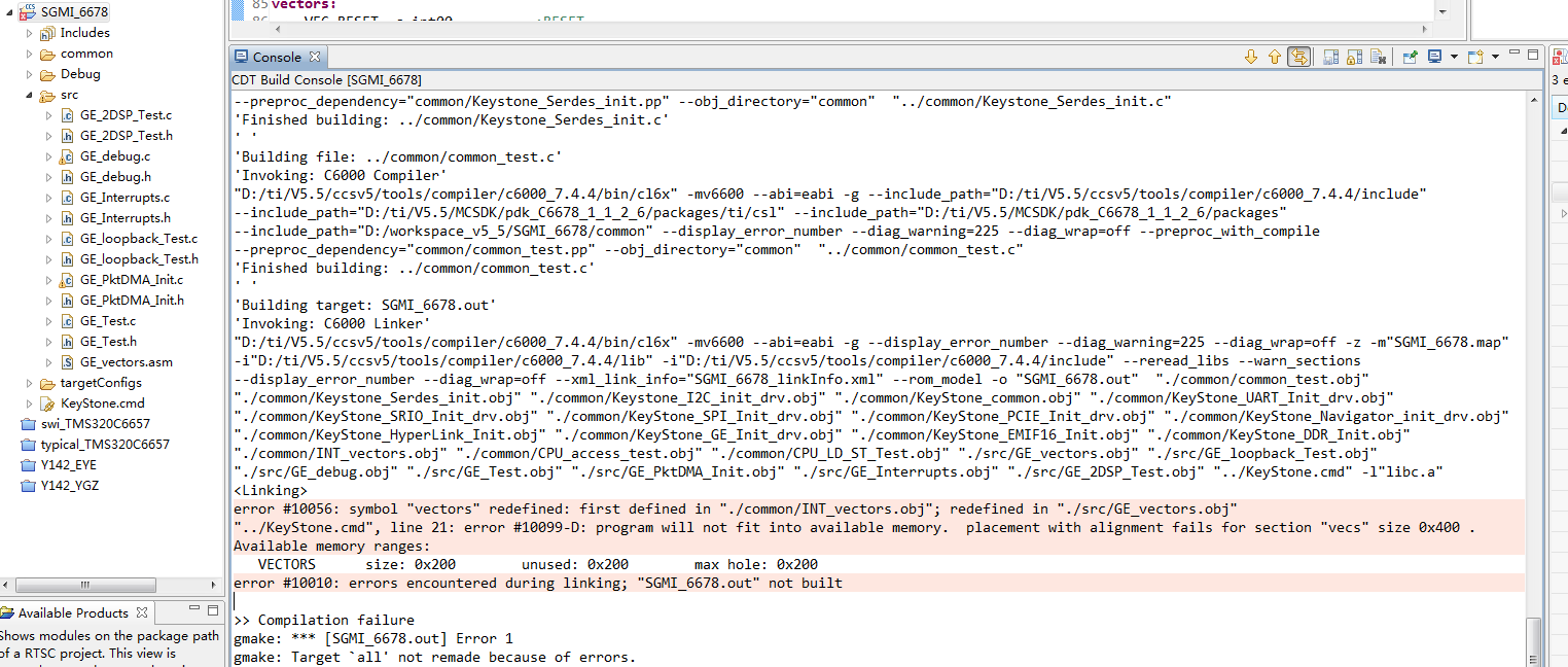 error #10056: symbol "vectors" redefined: first defined in "./common/INT_vectors.obj"; redefined in "./src/GE_vectors.obj"
