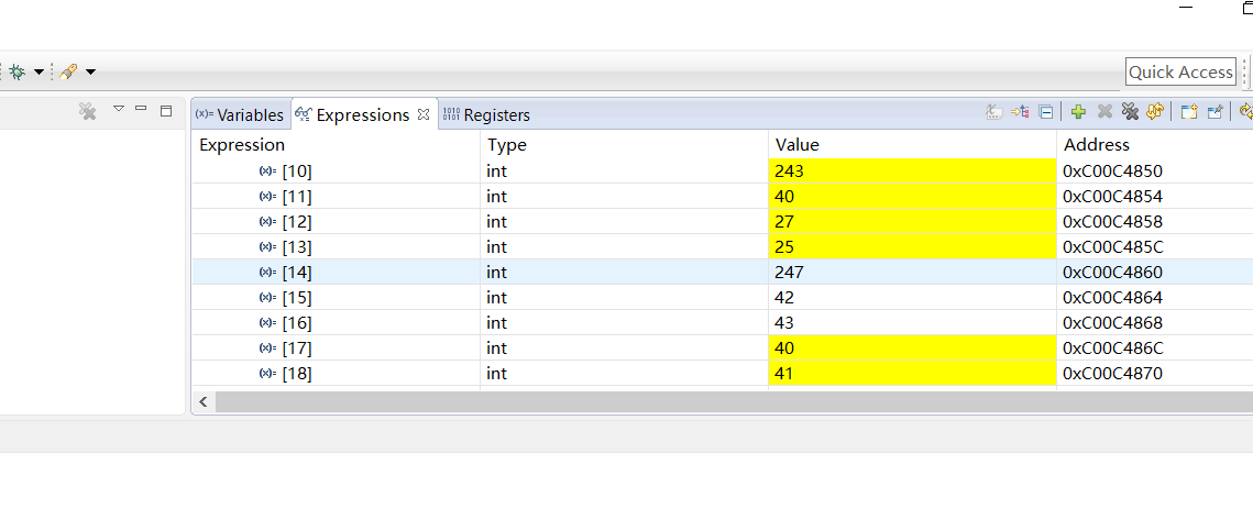 CCS调试中,变量观察是显示的数值是黄色的是什么意思
