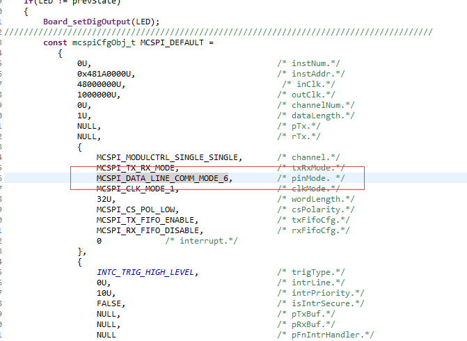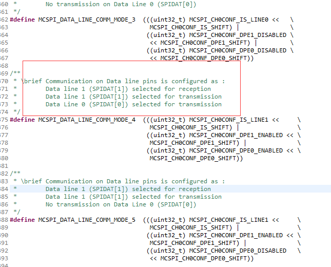 我用的am3359 ice v2开发板,用的TI RTOS,如图所示配置mcspi寄存器的结构体,这个pinMode是什么意思,为什么关于MCSPI_DATA_LINE_COMM_MODE_n的定义注释有三条,一共不就两条数据线吗,为啥有的一条数据线既接收又发送的,谁来帮忙解释下