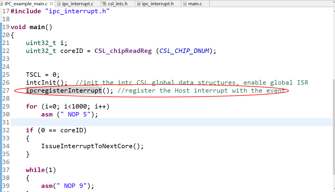 个人的一些理解:查阅了相关问题贴,有技术人员说是使用了csl文件进行了中断映射。我看了程序,猜想函数ipcregisterInterrupt()与中断向量的功能是等价的,对于这个仅仅是猜想,还不确定,所以向各位技术大佬求证一下。如果等价,那么我是否可以把这一段注释,然后在中断向量中写呢?