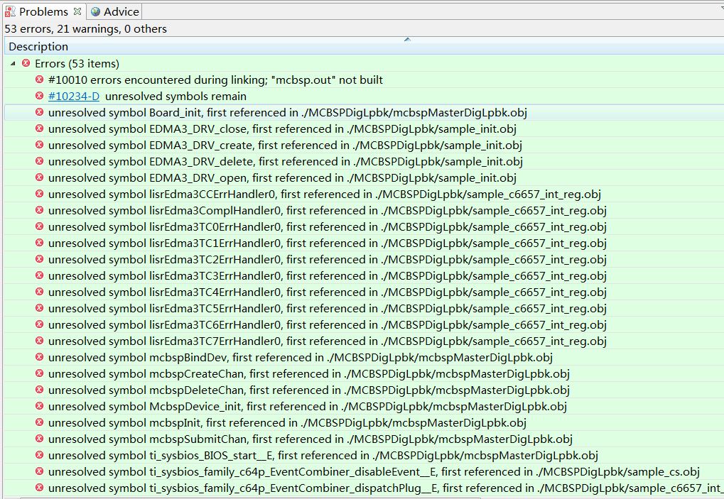 请问有McBSP例程吗?在PDK中修改要报.obj错。