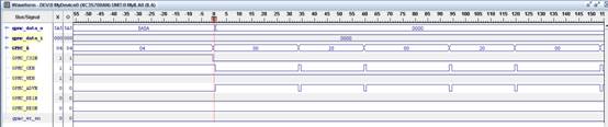 这时候地址从一开始的04变成了后面00和20来回变化。而且OEN低电平信号宽度来回变化。