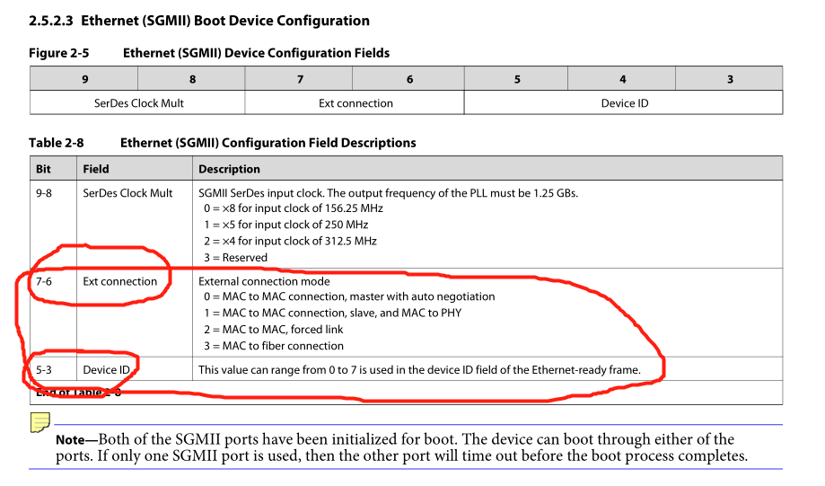 用的自己的硬件平台,从资料共享里面找到关于EMACboot的参数配置,我看附件中EMAC multicore boot的doc文档。因为我们这边GPIO0-15是接到FPGA上的,所以他的高低电平由fpga给,我看6678手册上面和doc里面说的 我不清楚几个参数如何配置,麻烦ti工程师指导下!我应该如何给fpga说如何配置这gpio0-12呢?(0-2引脚是010,剩下引脚我就不清楚了),如下图这两个参数我应该是多少呢????