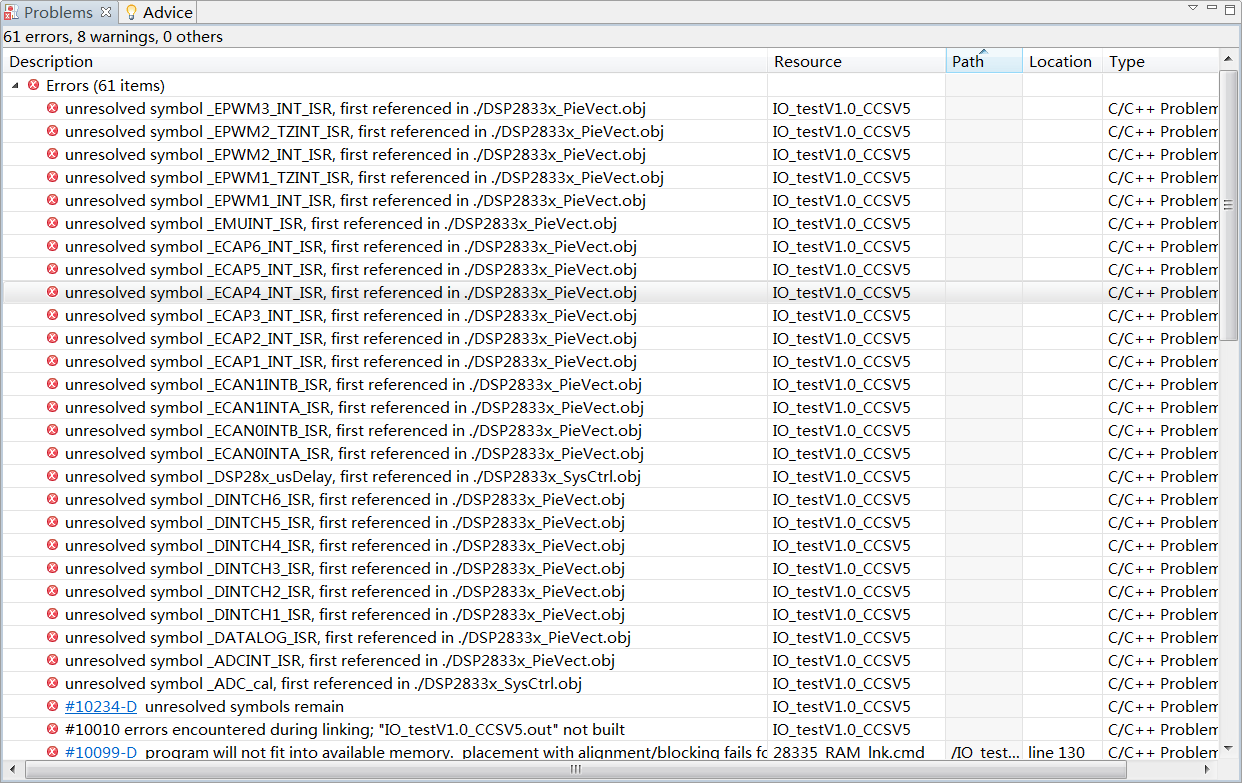 芯片是F28335,用CCS5.5重新自己建立之前CCS3.3的工程build时遇到.obj文件建立错误