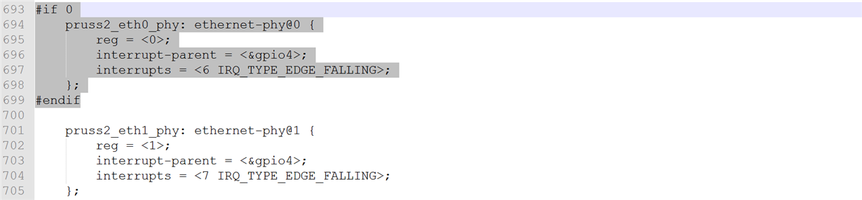 目前我司方案采用RGMII0作为与电脑相连的主网口,PRU2-MII1作为ECAT主站网口。但目前提供的ECAT驱动中绑定了PRU2-MII0与PRU2-MII1,
