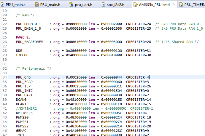 我修改了CCS里面AM335X_PRU.CMD文件(图1),使timer2改为timer5,在验证过程中,先在linux复位timer5,复位完毕,读取timer5寄存器;