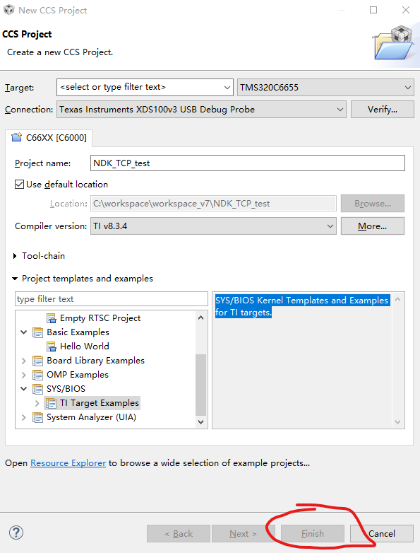 CCS中无法新建SYS-BIOS例程,新建工程时FInish按钮是灰色的,请问是什么问题?