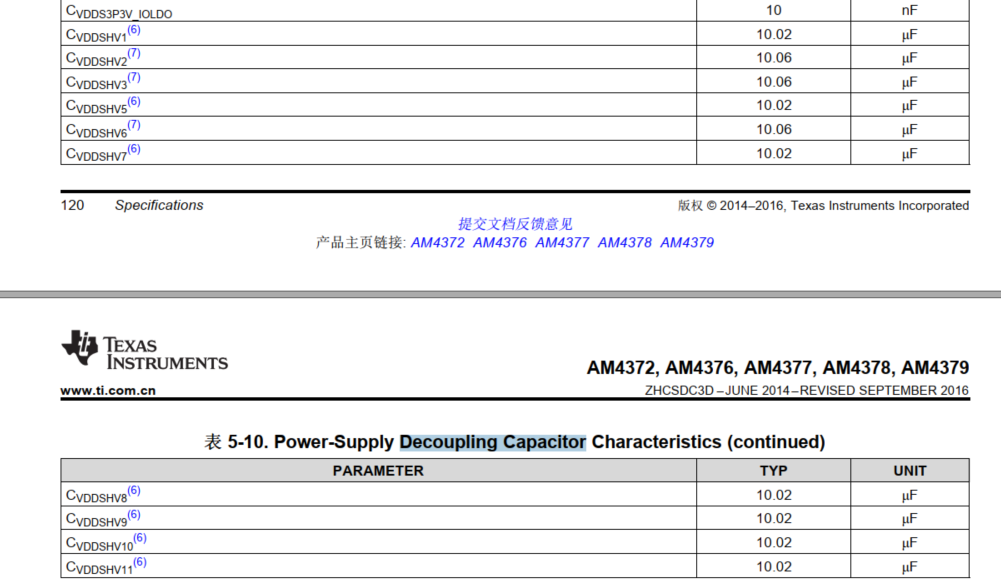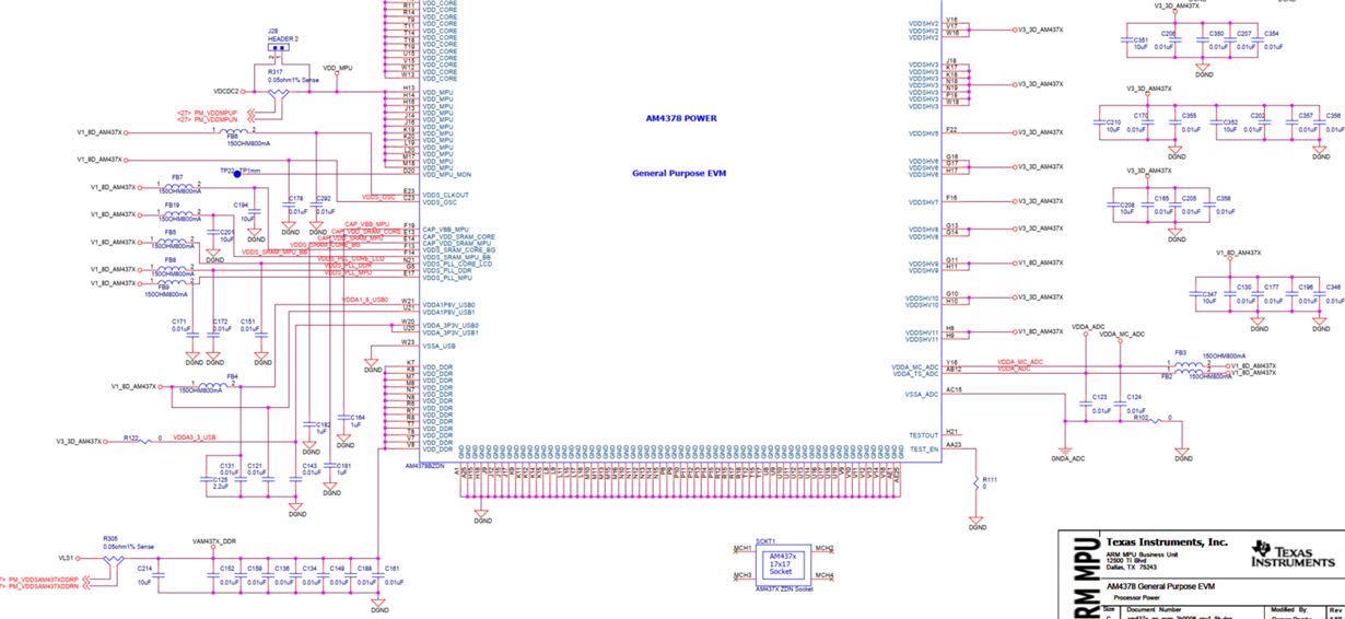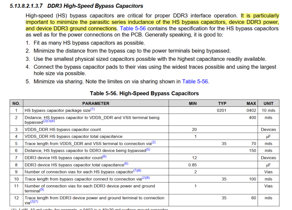 在AM437X的数据手册上io口电源的去耦电容容值如下图1所示,DDR电源域的旁路电容的个数及容值如图2所示,但是在TI官方的评估板上io口电源的去耦电容和DDR电源域的旁路电容的个数及容值是不满足手册要求的,明显要少很多,如图3所示。此外我们在进行PCB布局布线时发现如果严格按照手册推荐的各电源域的电容的容值和个数去添加,在芯片BGA下方无法摆放这么多电容(放的的太远 滤波去耦效果又不好),因此电容的个数怎么做均衡?在设计官方的评估板时是关于这里怎么考虑的?
