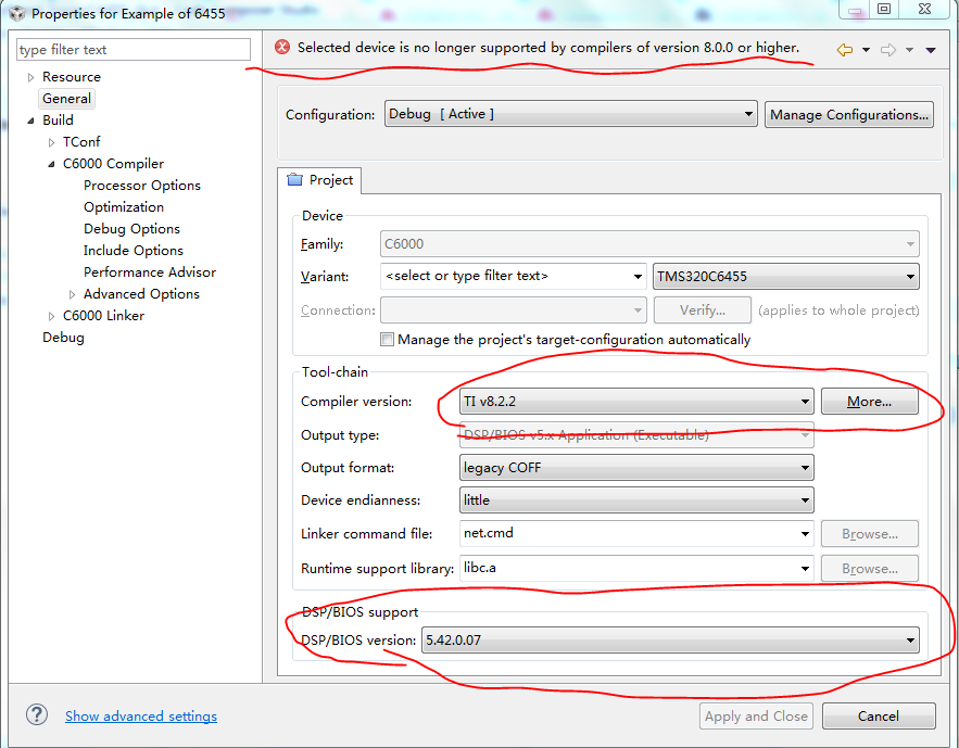 如图所示,之前用的C6455是用的DSP_BIOS,用的CCS V5.5进行编译的,现在我接手过来,想用CCS V8的版本进行重新开发?错误如图,是CCS V8已不再支持C6455这个器件的编译了吗?不应该啊。我现在做C2000的F28335芯片和MSP430F149的芯片都能支持啊。
