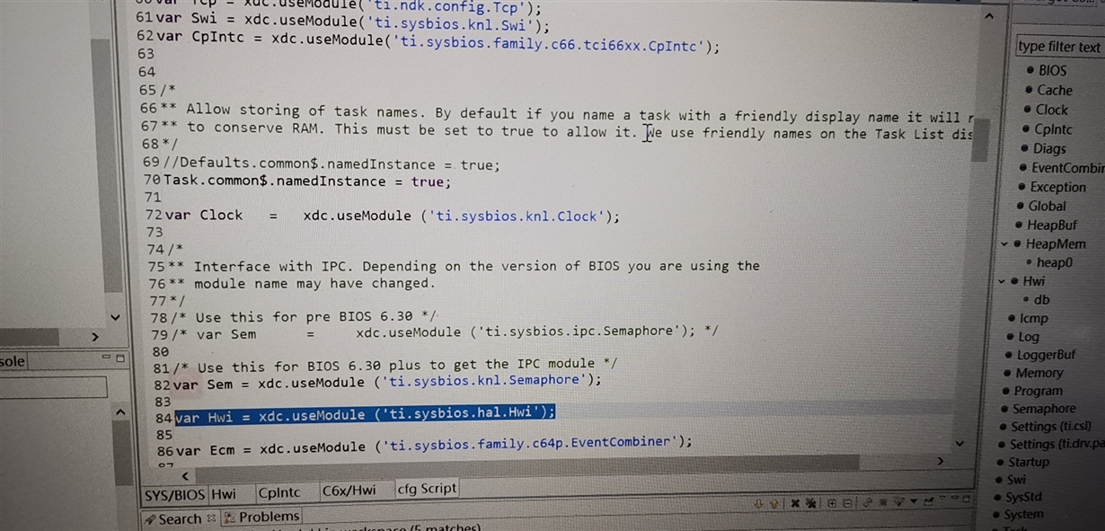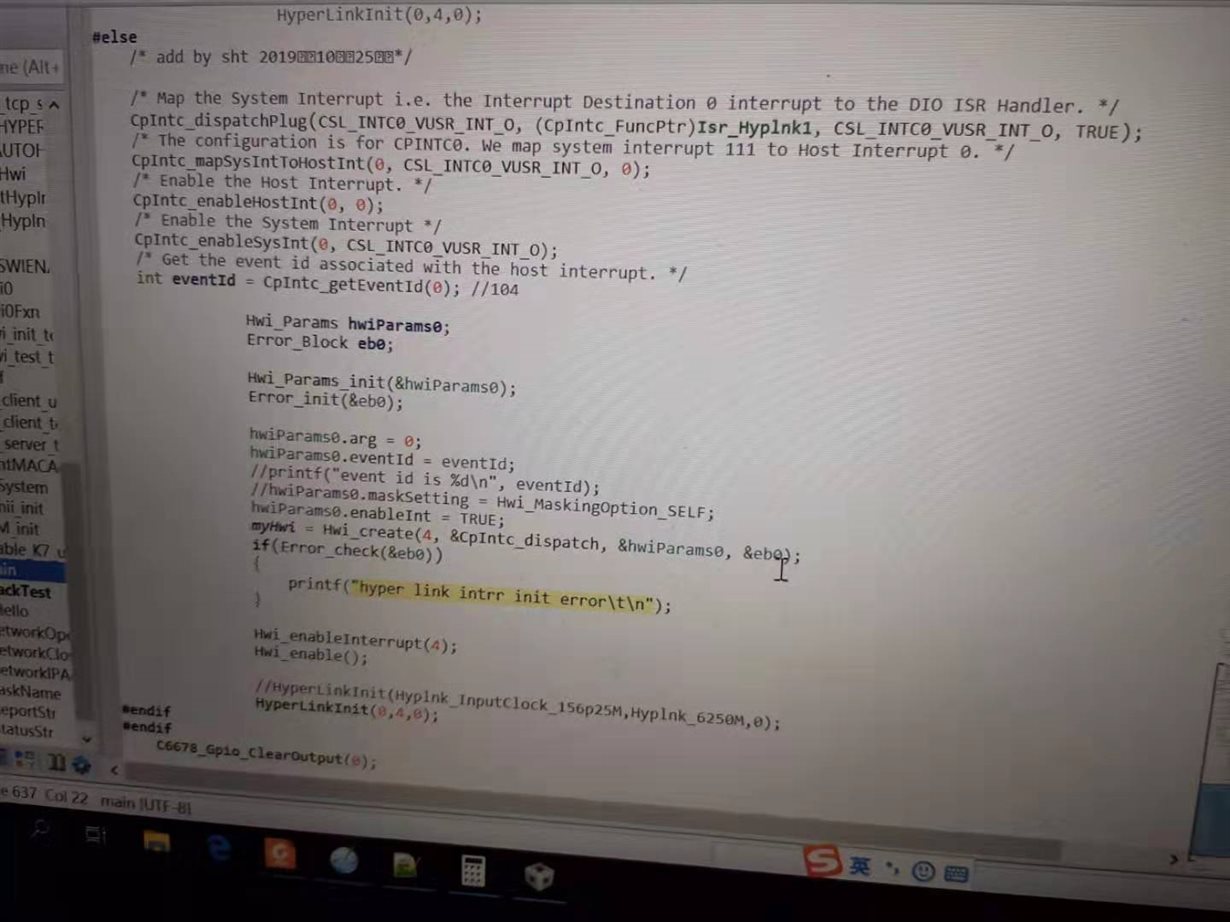 现象:hyperlink中断在裸机程序中可以正常触发,移植到sys/bios hwi动态/静态加载时,中断可以发出去,但无法触发,具体代码加载代码及.cfg文件配置如图,请各路大神各显神通帮忙摆平!!!谢谢了~