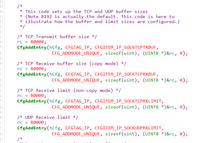 我想请问下ti的工程师们,上位机和dsp的网络包(tcp\udp)传输的过程中,什么pbm buffer 和queue 和 tcp的bufsize  还有nimu之间的联系是什么。此外 下图的rc值和send()、recv()函数里面的bufsize有什么联系