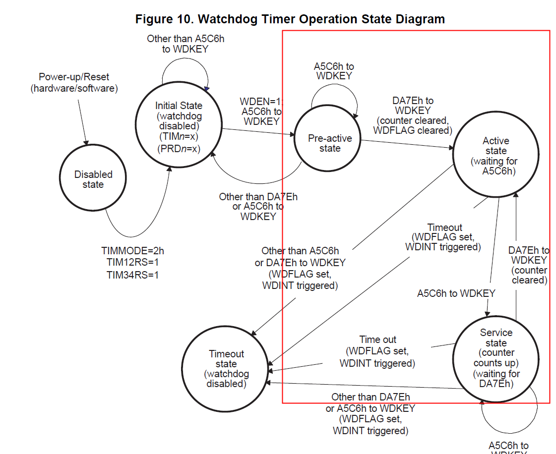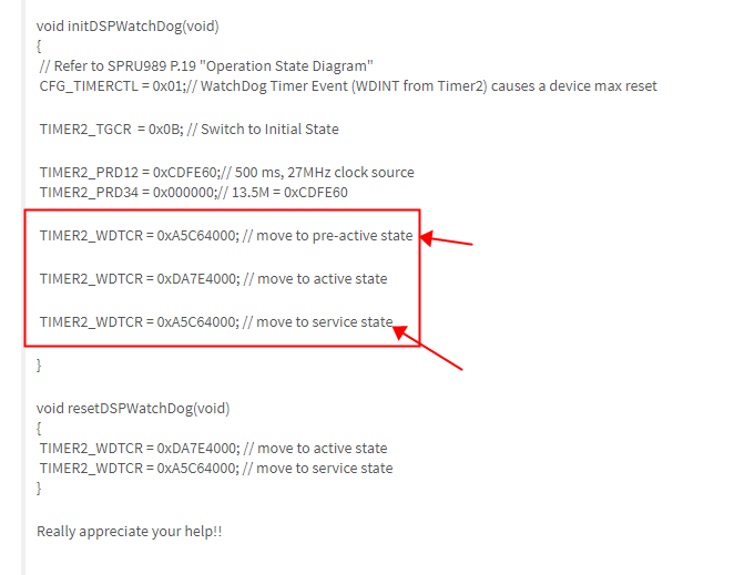 DM6437看门狗 pre-active state 有什么作用(见下图1)?在初始化的时候,需要给WDTCR赋值两次0xA5C6400吗?(见下图2)