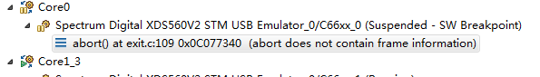 2.我在调试时,先下载core1~3这三个核程序并运行起来,再下core0程序运行起来,这样运行时正常的,但是如果先把core0的下载运行起来,在下载运行core1~3这是就会出现核0程序跑飞现象,错误打印提示如下: