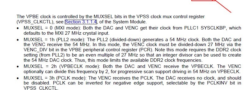 vpeb手册中使用vpbe的第二种方式对时钟配置。但vpbe的时钟最小是20M(PLL2DIV最大是1f),请问如何在考虑ddr时钟不受影响前提下,把vpbe时钟频率降到7.2M?
