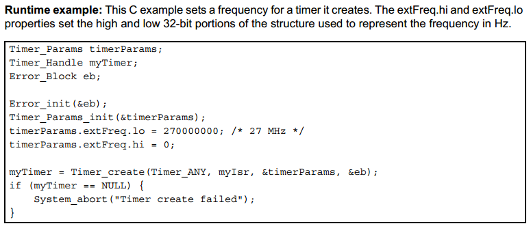 你好,最近我在使用sys/bios,根据用户手册对定时器设置频率,如下图: