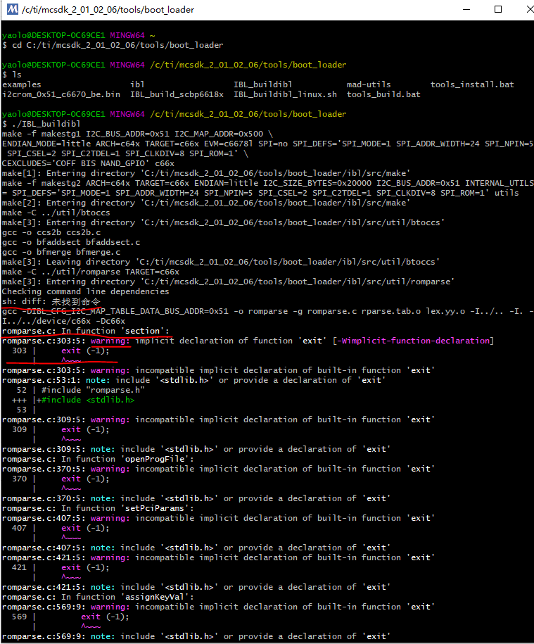 我这边项目中用到C6654芯片,需要对IBL进行修改,暂时先尝试编译一下C:\ti\mcsdk_2_01_02_06\tools\boot_loader下的IBL官方源码,编译的时候总是出错。