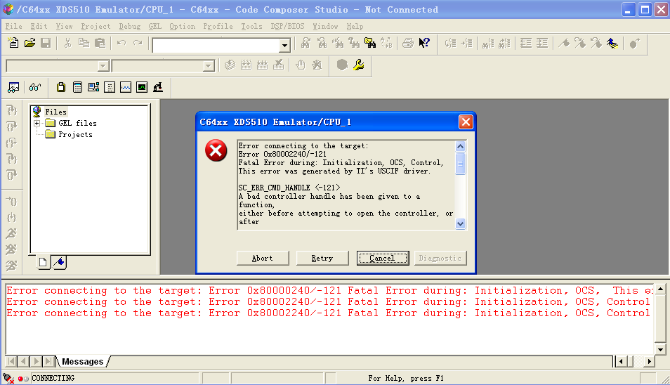 仿真器驱动和CCS驱动都是按要求安装好的,CCS设置也是按要求来的,硬件也连接好了,但是打开CCS软件,显示连接目标板发生错误。