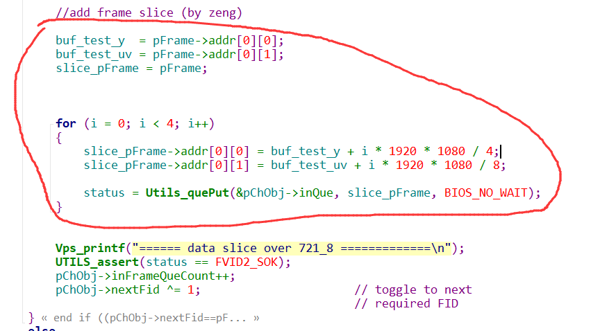 我就想把一个FVID2_Frame给分片,然后编码,该怎么完成呢?