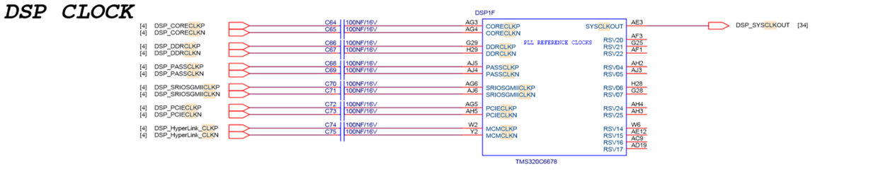 DSP内核时钟电路图如上所示;按说这部分电路也蛮简单的,不知道哪里出了问题。