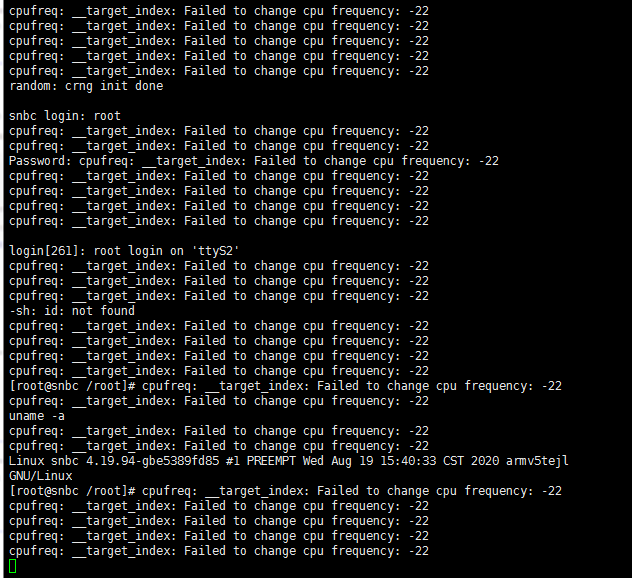 启动内核后会提示错误:cpufreq: __target_index: Failed to change cpu frequency: -22