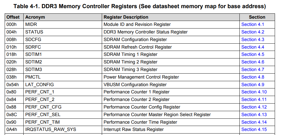 想使用TMS320C6657中DDR3_EMIF接口寄存器,在应用手册中找到是这样的: