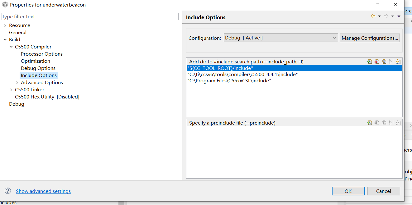 'Invoking: C5500 Compiler'
