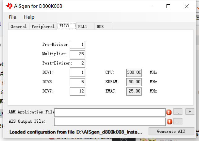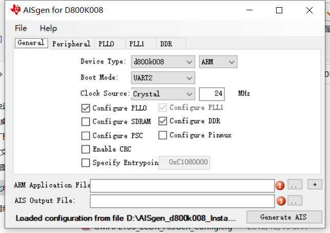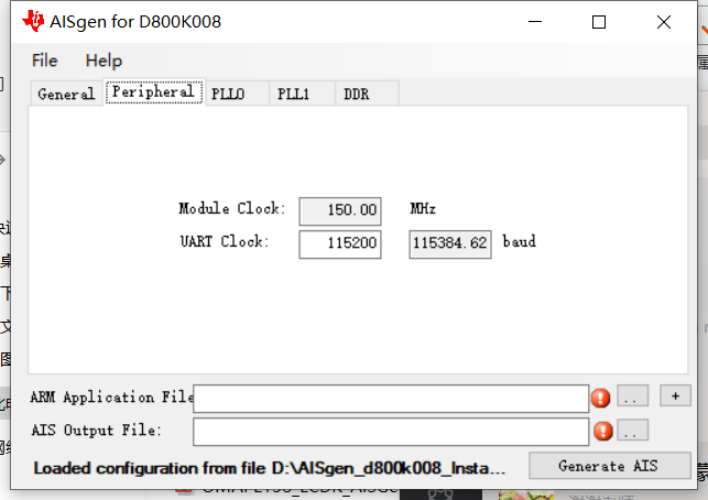 采用AISgen_d800k008生成ais文件,再用UartHost启动。AISgen_d800k008配置如下(与自带配置文件基本一致):