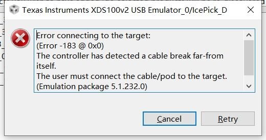 请问您用的是板载仿真器还是外接的仿真器?这个报错信息是在连接板子的时候还是在运行烧写程序的时候出现的?