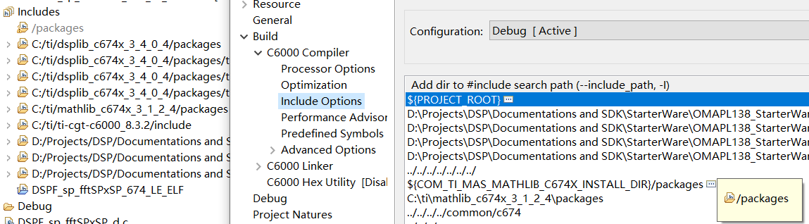 (2)工程includes目录下有一个路径为灰色,不知是否有关,对应参数如下