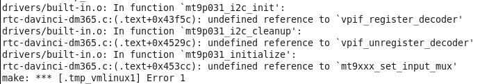 DM365在make menuconfig中添加内核模块MT9p031后编译报错,具体报错如上图,添加TVP5146时也会报错,这该怎么解决了?