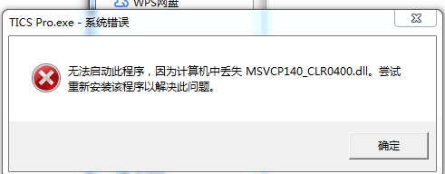 接着从网上下载到msvcp140_clr0400.dll文件后,放到指定文件夹注册完,重启,并再次打开安装好的 TICS Pro,还是有其他错误,