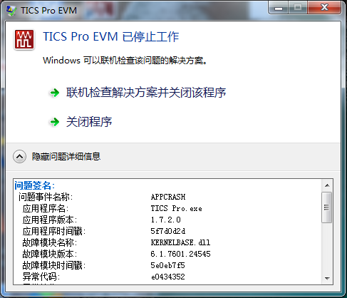 今天在windows7旗舰版上安装了TI的 TICS Pro,安装完成后打开弹出一个错误,