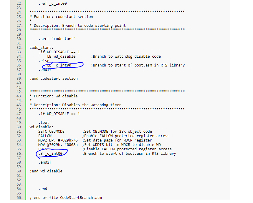 我想请问,画圈圈的两条语句是跳转指令,跳转到用户代码,这我是可以理解的。但是CodeStartBranch.asm文件的代码和用户的代码没有在一起编译过,所以在这里跳转后的pc指针是怎么保证不出问题的?