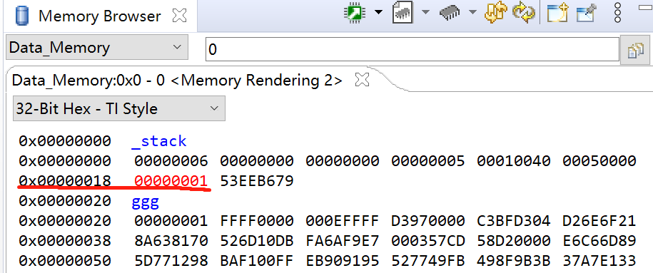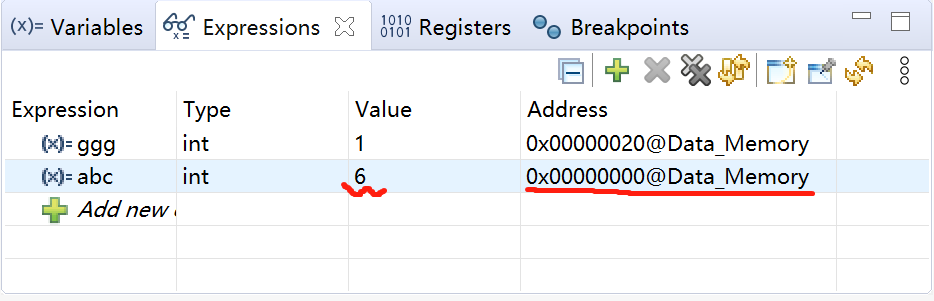 abc应该是值为1,地址为0x00000018@Data_Memory!