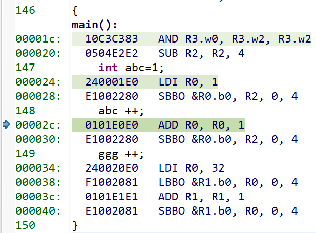 请问这里是哪里出了问题? 我该怎么做才能使得PRU程序的局部变量的调试是准确的
