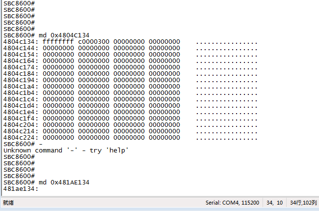 在uboot代码中利用寄存器地址控制GPIO3_OE,代码运行到这里就会卡死,在uboot命令行使用md命令查询寄存器的值,也一样会卡死。