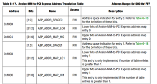 但是我访问pcie ip核的cra寄存器,也就是映射在bar2中0x1000这个地址却能正常访问,cra寄存器偏移0的这个却访问不了,关于pcie ip 0x1000描述如下图: