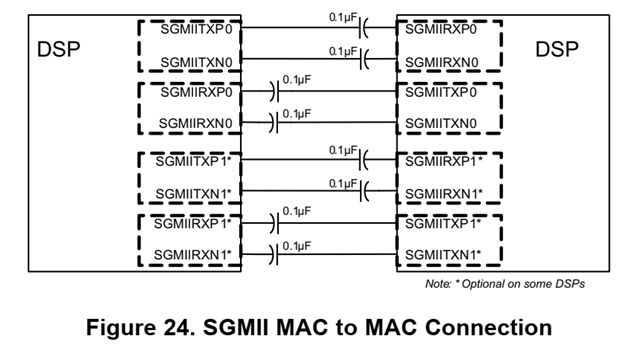 已明白以下接口可以内部自环,不需要外接电路。能够在板上设计自回环?如下图所示,把左边的DSP和右边的DSP理解成同一个DSP.