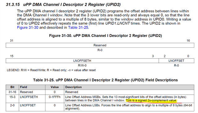 1、目前将upp的行大小upp_line_size设置成超过32768的数值,然后测试upp接收,接收完数据以后我发现upp接收窗口的当前地址相对于窗口起始地址在负增长。调到32768以下都是可以正常接收的。