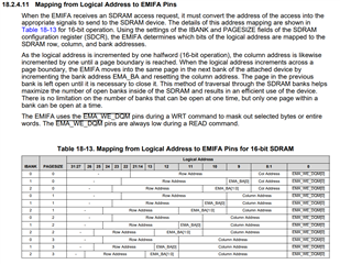 还有,18.2.4.11中第二段我的理解是,列地址增加1,对应的ram中是增加了一个半字(16 bit)?逻辑地址的最低位是DQM0n,而且没有提到DQM1n,所以是DQM1一直有效?逻辑地址如果作为一个int来看的话,逻辑地址的1,也就是逻辑地址的1个单位,对应ram里的一个字节(8 bit)