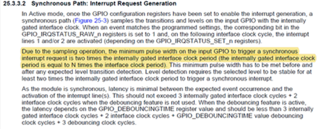 其中說明GPIO Interrupt需要的最小pulse寬度應該是 :