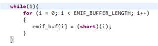 3:emif_buf[i]这种直接数组访问有没有问题?而且这样是访问单个数据,此时看时序图,在burst进行两轮之后就被BT命令截断了,根据文档,C6748的burst size最大为8,如何访问,burst长度会为8?