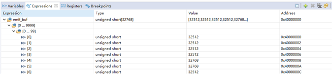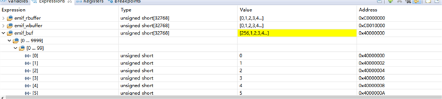 此窗口中显示的地址和数组下标是两倍的关系,我觉得这里能够对上RAM按字节存储,每单个地址对应一个字节,short是两个字节