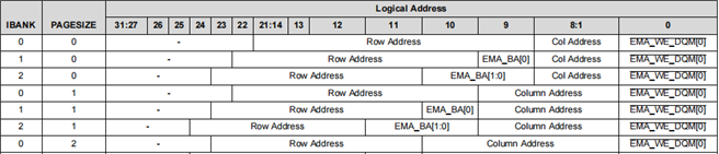 如,这里设置IBANK=0, PAGESIZE=2, 对照Table18-13,由上图信息可以得到4个逻辑地址,依次是0x2A88, 0x2A89, 0x2A89, 0x2A88。 那么这四个逻辑地址能否依次对应上EMIFACS0的物理地址0x40002A88,0x40002A89,0x40002A89,0x40002A88?