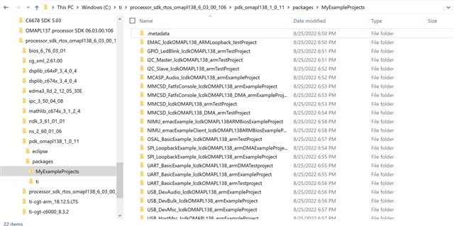 Detecting all projects in PDK and importing them in the workspace C:\ti\PDK_OM~1\packages\\MyExampleProjects