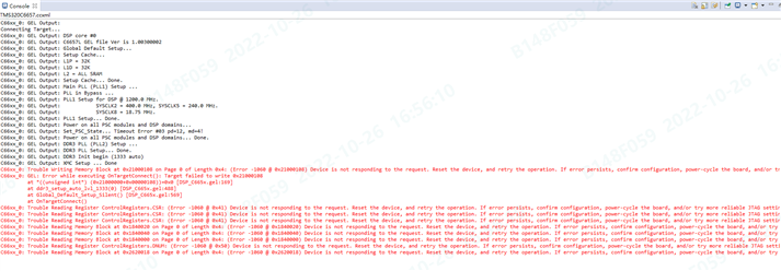 在连接C6657所选的核时,会加载gel文件到相应的核,并在核中执行,我们的问题是连接核1时能正常加载并执行gel,连接核0执行gel时出现报错。