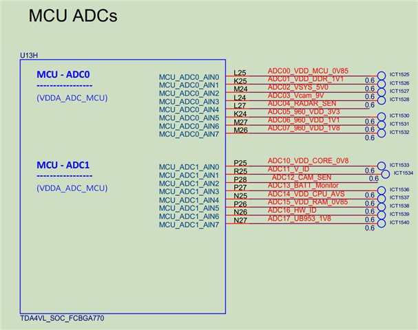 Currently the MCU_ADC0/1 are not enabled in TDA4VL/J721S2 in the SDK.